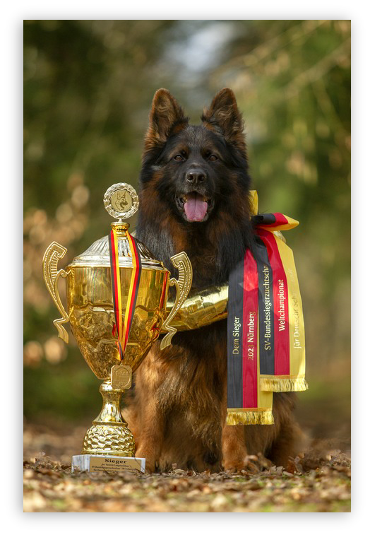 2023 vil blive året vi sent glemmer, Den første weekend i september stillede vi igen på verdensmesterskabet for schæferhunde i Nürenberg i Tyskland. Sidste år kom Milo i avlskalssen i Tyskland, hvilket er noget af det største en schæferhund kan opnå, en avlsklasse gives kun til de absolutte bedste hunde, hvor både ekstereiør samt avlsformåen Vurderes. I år slog han alle vores forventninger, da han udover at opnå avlsklasse igen, vandt førstepladsen, og derfor nu kan kalde sig for worldchampion på BSZS 2023.